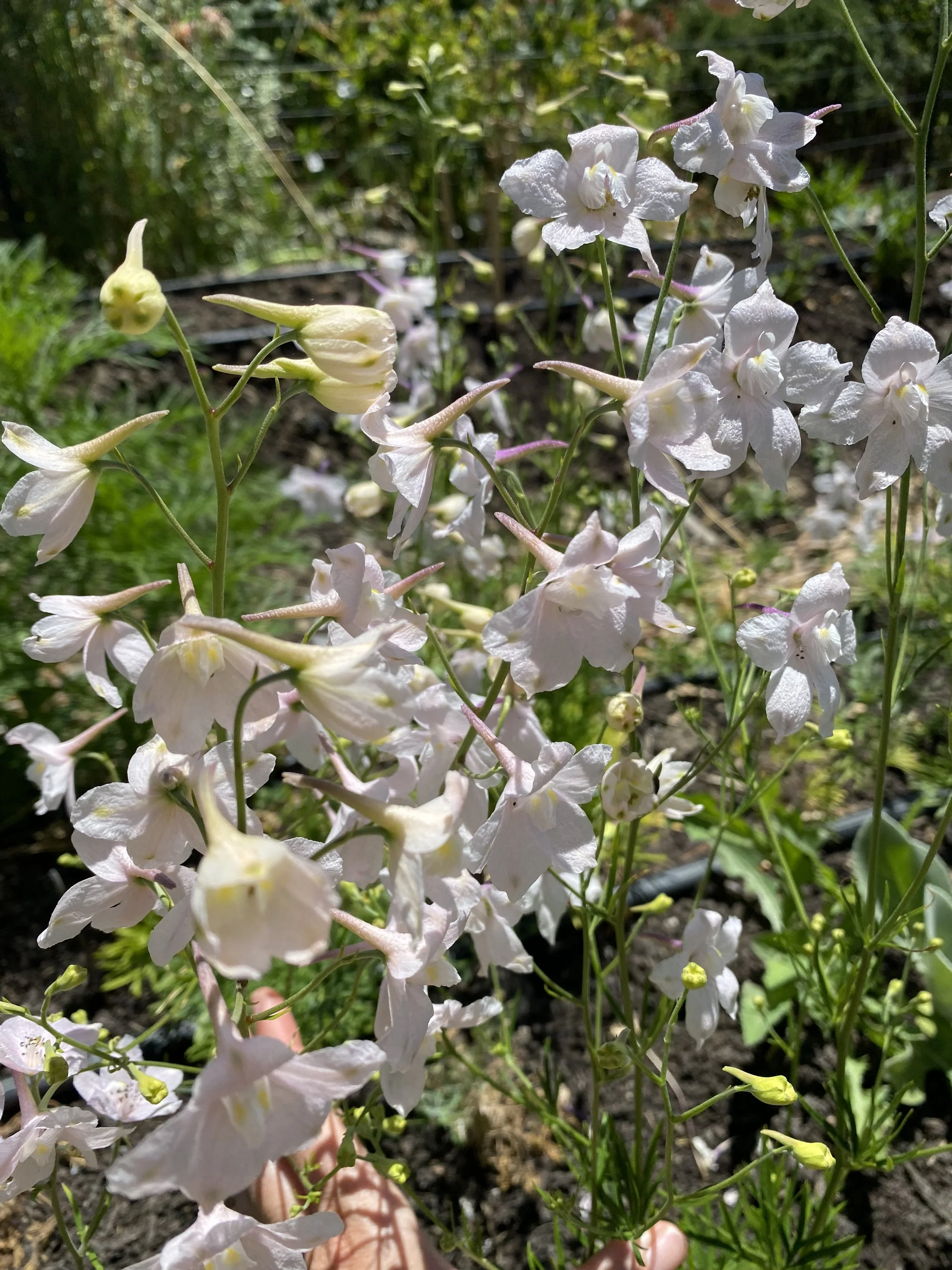 Here is Celosia 'Bar Bossa Champagne' looking absolutely divine. We don't pinch our first flush, letting the crested fans get as big and wavy as possible. Then we cut the side shoots all summer long.