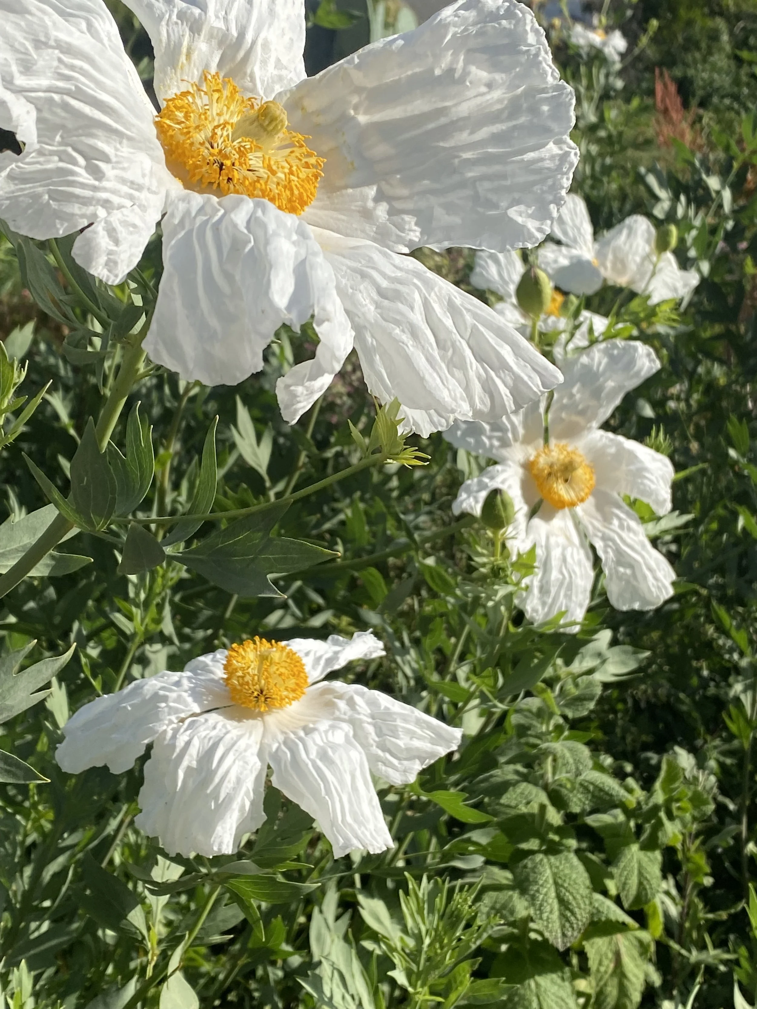 A tangle of Alcalthaea suffrutescens 'Parkallee' and Lisianthus 'Celeb Apricot' on repeat in July.