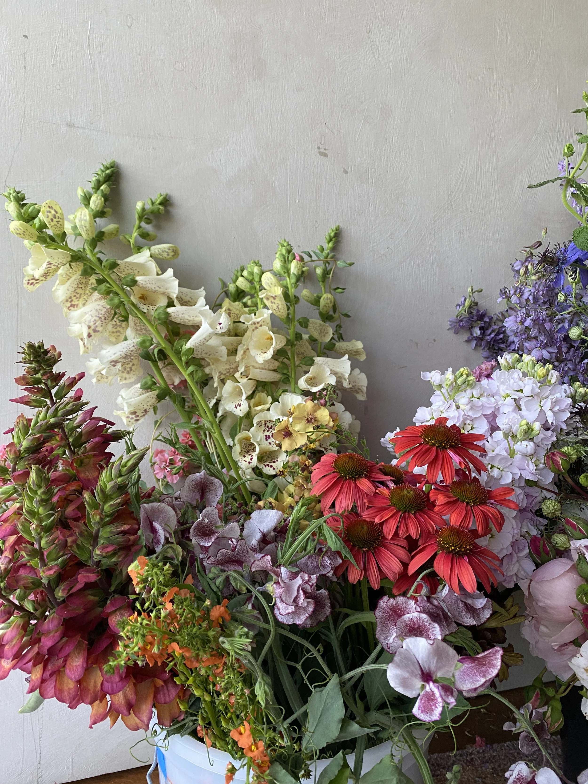 Here is Celosia 'Bar Bossa Champagne' looking absolutely divine. We don't pinch our first flush, letting the crested fans get as big and wavy as possible. Then we cut the side shoots all summer long.