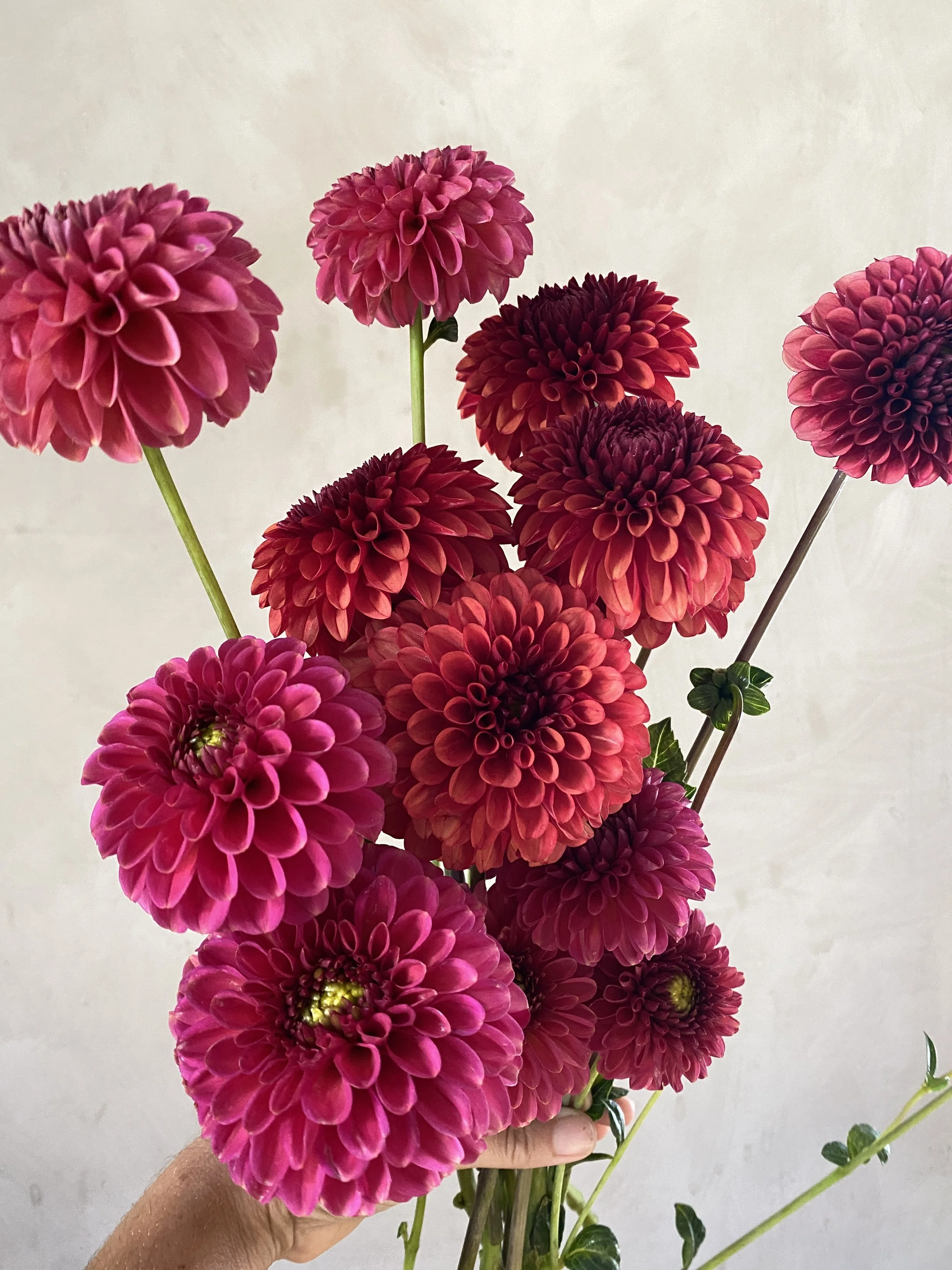 Dahlia 'Zundert Mystery Fox' an outstanding performer. A juicy raspberry color and a little bit smaller in size than 'Brown Sugar'  We loved growing this one.