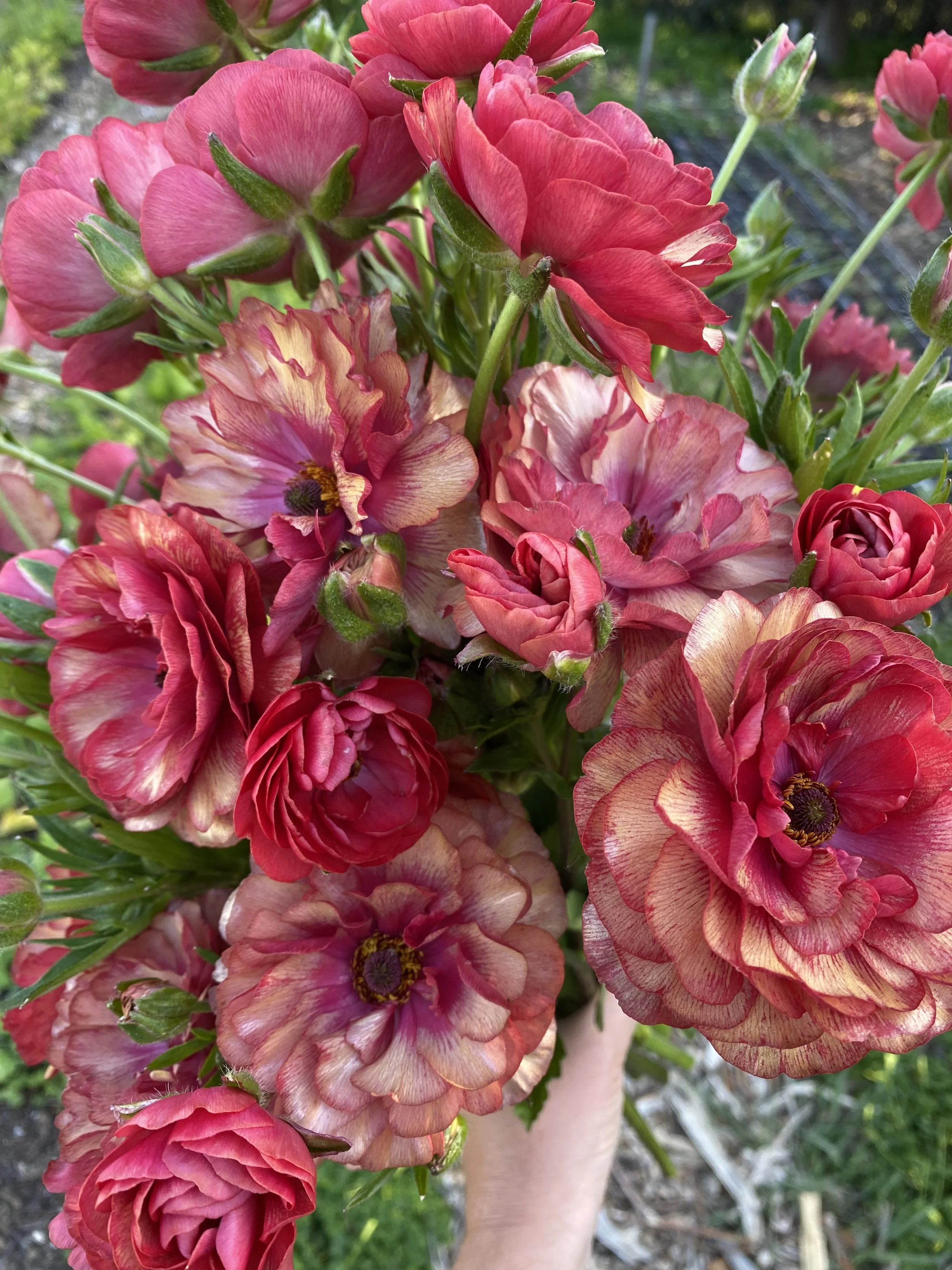 Our Ranunculus are soaked, pre-sprouted and potted up, showing lots of green leafy foliage and ready to be planted in your gardens. We take care of all the hassle of starting them so you can just enjoy the blooms. These are perennials in our mild climate. Keep them in your gardens for a show next year, or dig them up and store them during their dormancy in the summer.